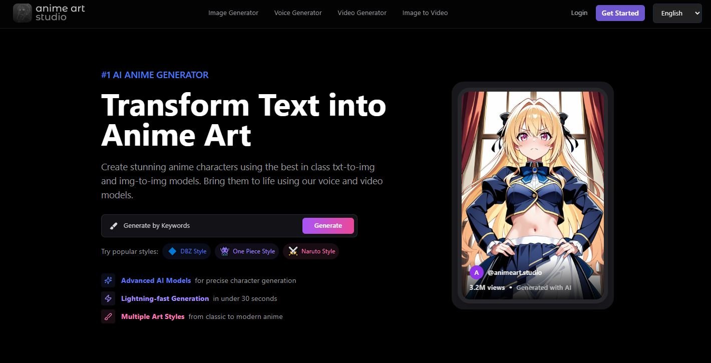 AnimeArt.Studio is an innovative AI-powered platform that enables users to create stunning anime-style artwork from text prompts, images, or poses using advanced artificial intelligence technology.