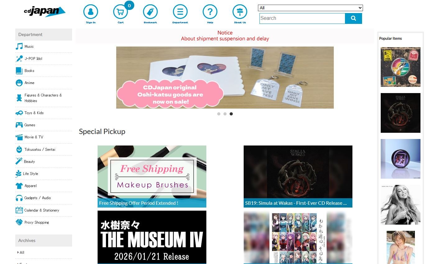 CDJapan is one of the largest and most trusted providers of authentic Japanese entertainment products, specializing in CDs, DVDs, Blu-rays, anime merchandise, and collectible figures.